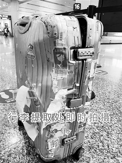 近日,微博網名YangFanJame發文稱,去年12月22日他的朋友從北京乘坐海南航空HU7807飛往廣州,到達廣州提取行李時發現日默瓦行李箱被砸癟,已到全箱開裂無法關合、箱內物品掉出私隱暴露的程度。他的朋友在機場投訴等待三小時未果後選擇先行回酒店。