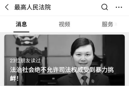 昨晚(12日),最高人民法院公眾號以「法治社會絕不允許司法權威受到暴力挑釁!」為題發佈文章,沉痛悼念周春梅法官。
