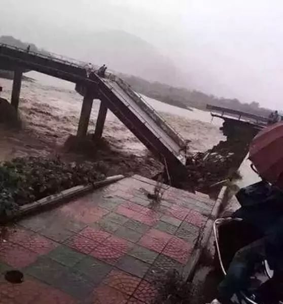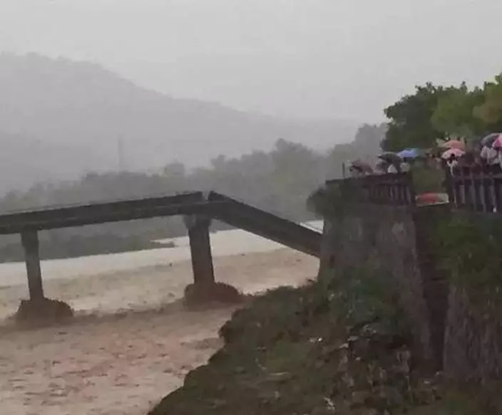 浙江瑞安市一座大橋,上周四下午在暴雨下橋面坍塌,一名騎電單車經過的男子直墮橋下,幸被人救起送院。