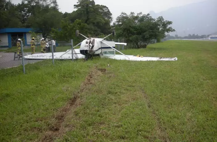前年9月一架香港飛行總會小型飛機,在石崗機場着陸時發生意外,衝出跑道,機身翻轉。民航處完成有關意外調查,指飛行員沒有完全依照已訂定的中斷着陸程序,加上分心所致。
