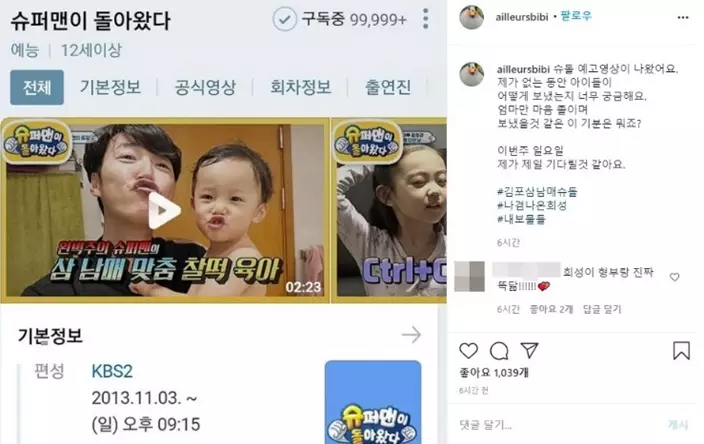 晟敏以父親身份登上《超人回來了》。晟敏IG圖片