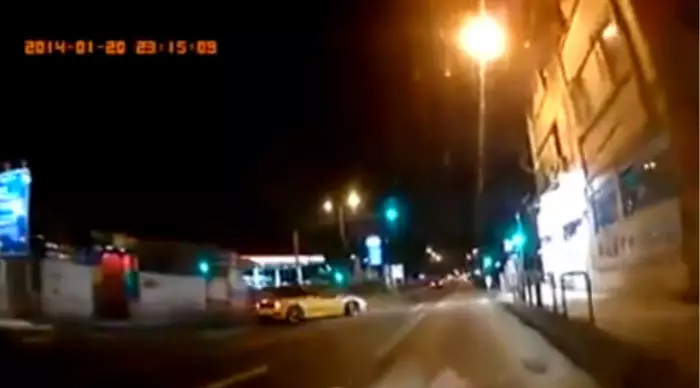 該段由行車監察器拍下的撞車片段,顯示時間是前晚十一時許,九龍城界限街有三部跑車在路中風馳電掣。當中白色本田和黑色保時捷在最左線高速駛過,左二線一輛黃色法拉利到來被前面的士「阻路」,法拉利加速爬頭時失控,猛撞的士車身,的士頓時在路作一百八十度打轉。法拉利司機卻在對方司機乘客情況未明下,亡命加速,駛至一百米外的油站前,又失控轉了兩圈幾乎衝入油站。當時油站內有電單車正在入油,若法拉利衝進去後果難料。