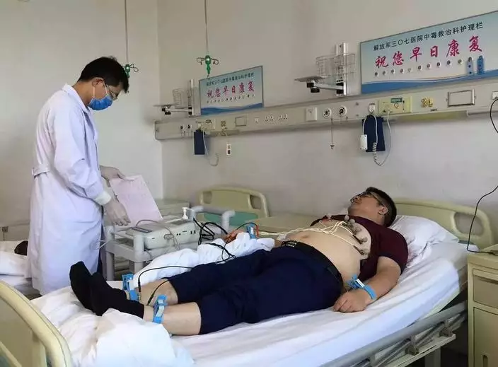 義工團隊工作約三十多小時後,陳光標出現胸悶、乏力等症狀,被送到解放軍三○七醫院,診斷結果為中度中毒,並在中毒救治科接受住院治療。