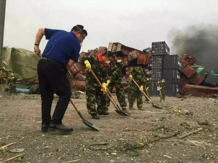 內地富商陳光標日前沒穿上保護衣物,僅戴上口罩,聯同二十三名工人,在天津海濱新區第八大街、五大街清理兩條大水溝,以及清理部份廢墟。他更聲言:「我們的工程隊一定堅決服從政府的一切安排和調派,做到幫忙不添亂,同時確保自身安全。」
