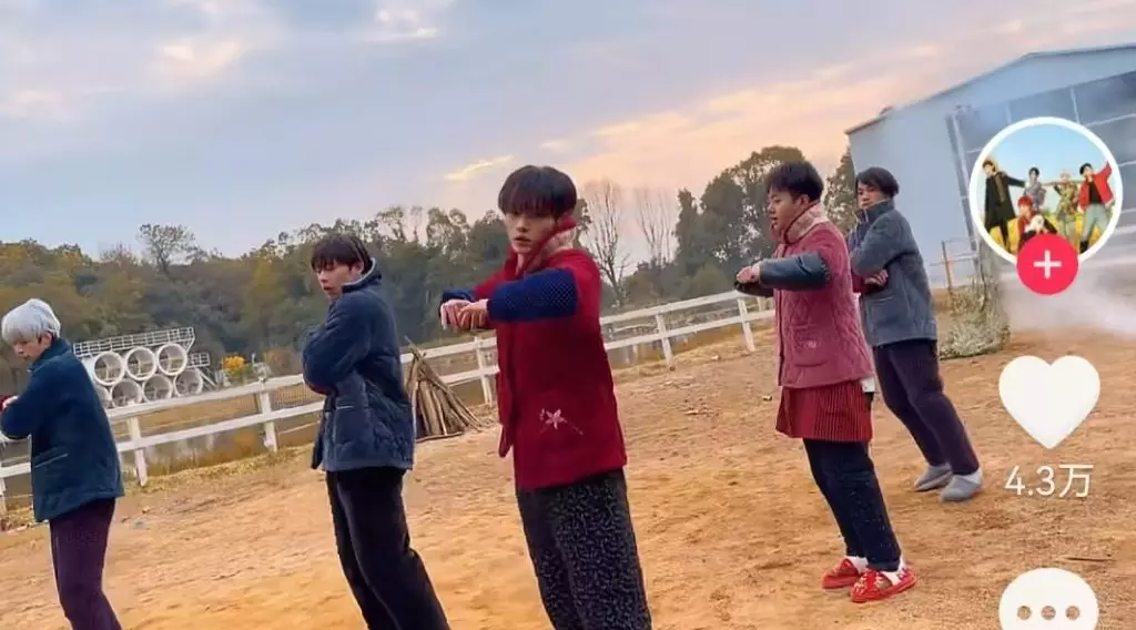 南後生仔著棉睡衣田間模仿BIGBANG跳舞極速爆紅,舞姿不佳成員成亮點。抖音截圖