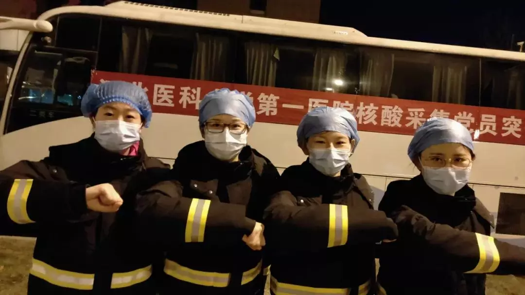 郭嬌嬌:1月5日凌晨的時候接到醫院通知,說要去做支援藁城核酸檢測的工作,通知4:50在醫院急診大樓門口集合。