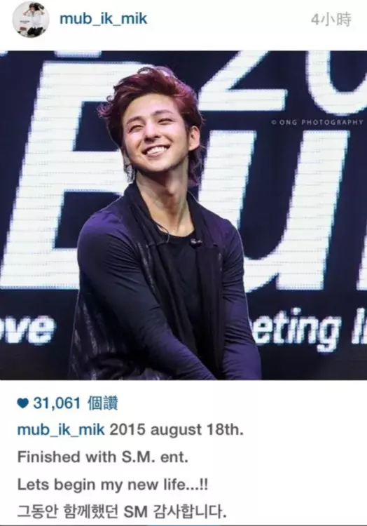 韓國男團Super Junior成員金起範在Instagram留言,指自己已離開SM娛樂,展開人生新一頁。