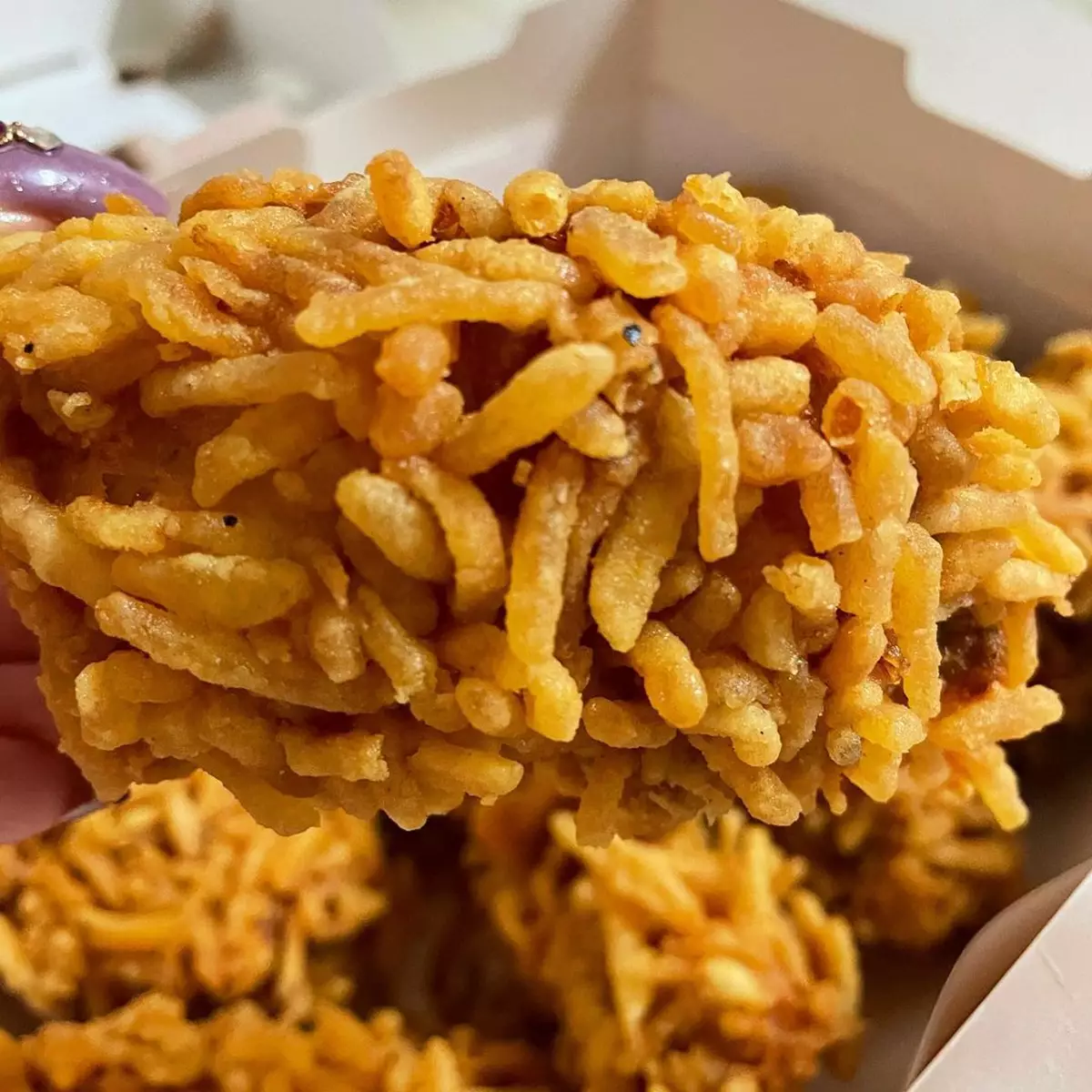 能有這個魅力都因爲新口味將炸雞和薯條這兩樣超香口的美食結合,在原本已經非常香脆的炸雞皮上加入同樣内脆外軟的薯條,令整體口感升華到一個更高的層次!從網民分享的照片可見,炸雞表面鋪滿幼身的薯條,看起來非常吸引!而且加入薯條後,外皮不再是單一的鹹味,更多了一重薯仔的味道,與鮮嫩的雞肉簡直就是絕配。