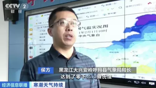 黑龍江大興安嶺呼瑪縣氣象局局長侯方:2月1日監測到極寒最低氣溫達到了零下45.3攝氏度,是四十年來最低值。預計2月3日後,氣溫略有回升。