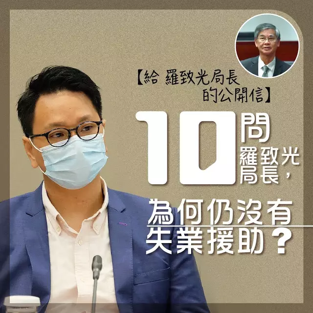 鄧家彪致公開信十問羅致光「為何仍沒有失業援助?」。