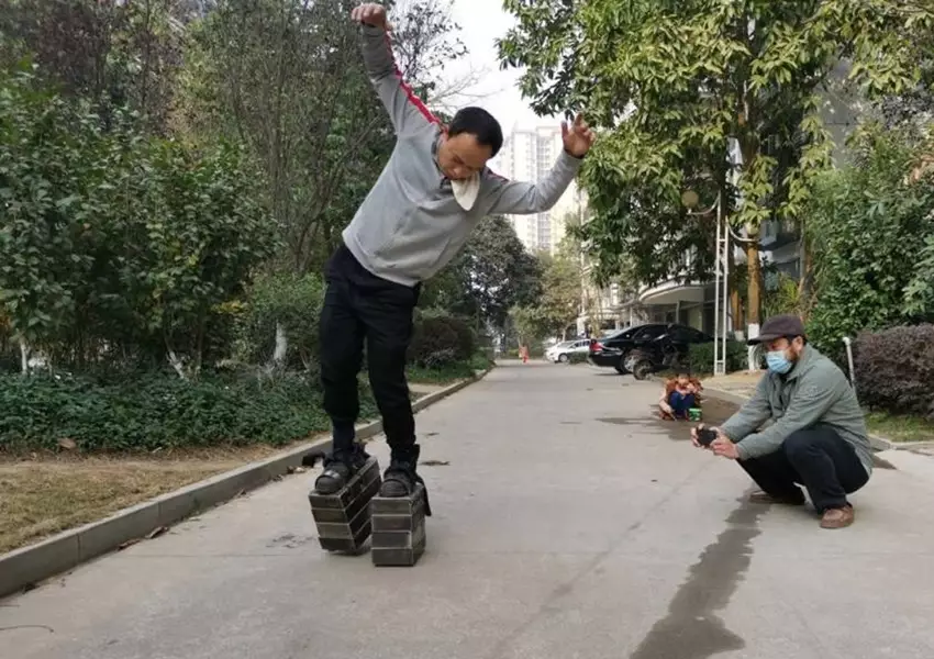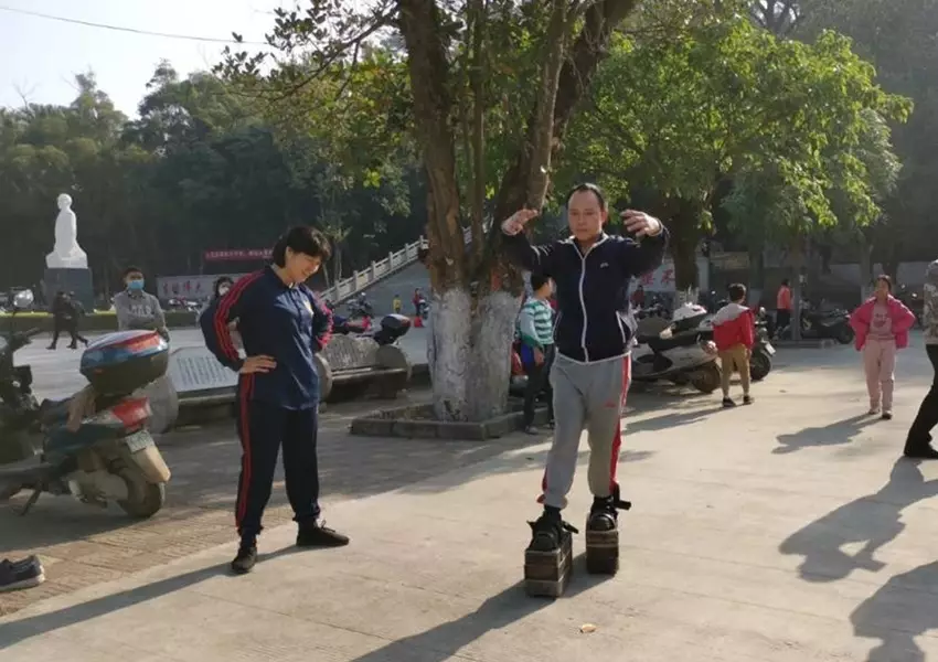 廣西玉林市博白縣一名42歲男子張恩順,決心要練成「鐵鞋神功」,每天穿上一雙共重達150公斤的鐵鞋鍛練,至今已練功5個多月。他稱,每次練習完都會渾身發熱、血液加快流動,經脈也更暢通。