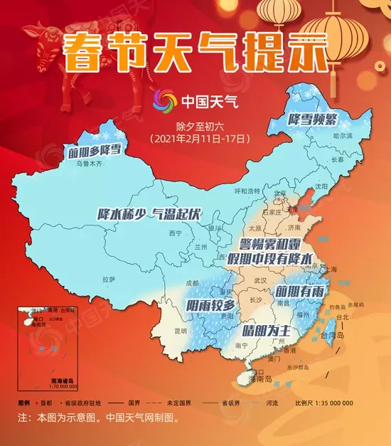 另外需要注意的是,除夕至初四的早晨,河北、河南、山東、安徽、江蘇、湖北、湖南、四川、重慶等地將有大霧,部分地區能見度不足200米。初三至初六,瓊州海峽有間歇性大霧,需防範對出行的不利影響。