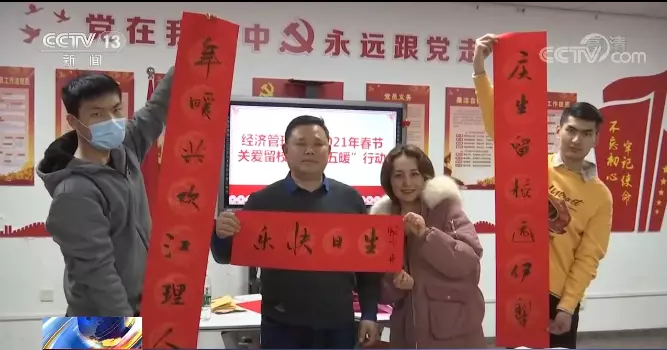 在江西理工大學今年寒假有80多位同學選擇留校,新疆學生帕力再就是其中一位。春節前夕帕力再與其他留校學生一起受邀參加了學院舉辦 「年味熱身活動」,老師們現場給留校同學寫春聯、剪窗花,帕力再也收到了一份特殊的生日禮物 。