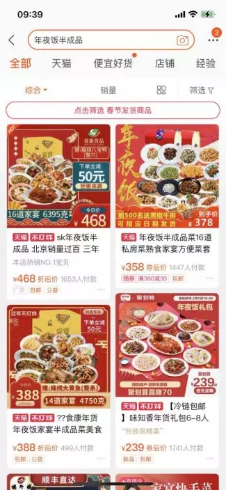 搜索各大平台發現,今年年夜飯產品種類豐富,既有外賣平台可預訂的外帶套餐,也有電商平台所售加熱即食的半成品。