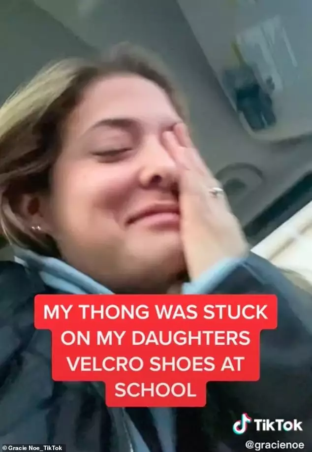 她的6歲女兒表示,當日早上踏入校門後不久就被老師叫停,對方告訴她「你的鞋子踩著點東西了」,她拿起一看發現是媽媽的內褲,於是展示給校長:「你看,這是我媽媽的內褲,她房間很亂的!」老師續叫她將內褲收好,但女兒又轉身將該內褲展示給同學,大喊「這東西今早黏在我鞋子上了」。這名媽媽在片中邊聽邊尷尬掩頭苦笑,事後還在帖文寫道:「我在替這6歲小孩物色新學校」。