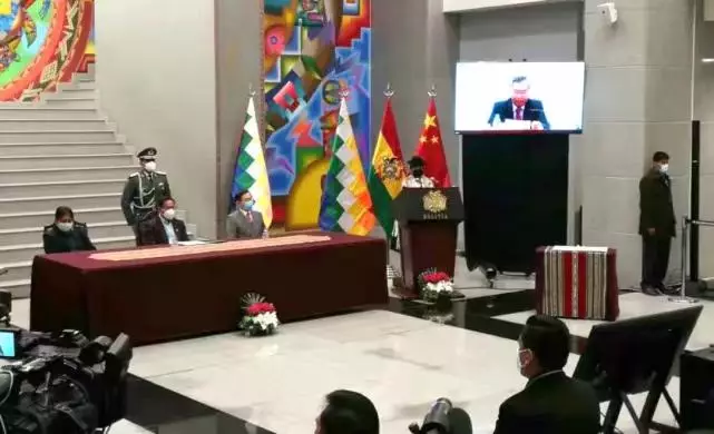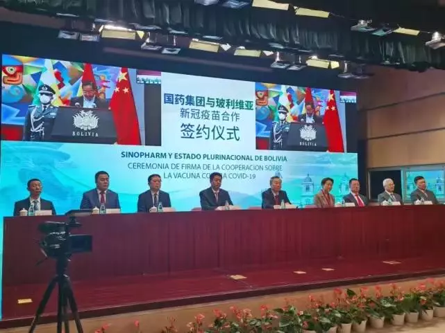 2月11日農歷大年三十晚上,中國國藥集團與南美國家玻利維亞在北京和玻利維亞首都拉巴斯以視頻會議的形式,同步舉辦中玻兩國新型冠狀病毒疫苗合作簽約儀式。出席簽約儀式的玻利維亞總統路易斯·阿爾塞在致辭中對中國表示感謝,負責主持簽約儀式的玻利維亞總統府官員沃米更是激動不已,高呼「生命萬歲!中國萬歲!」