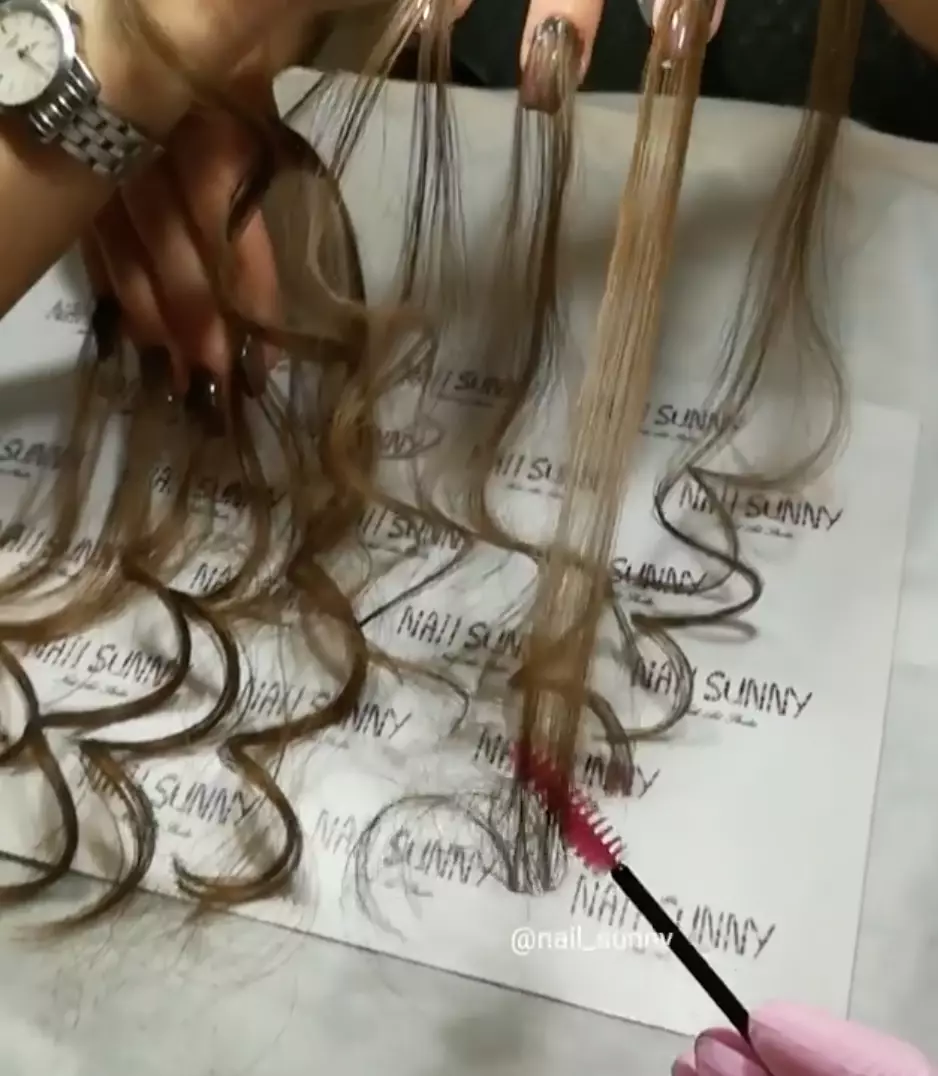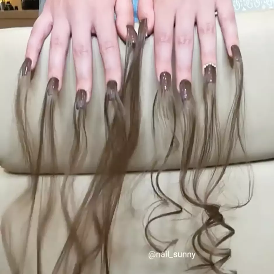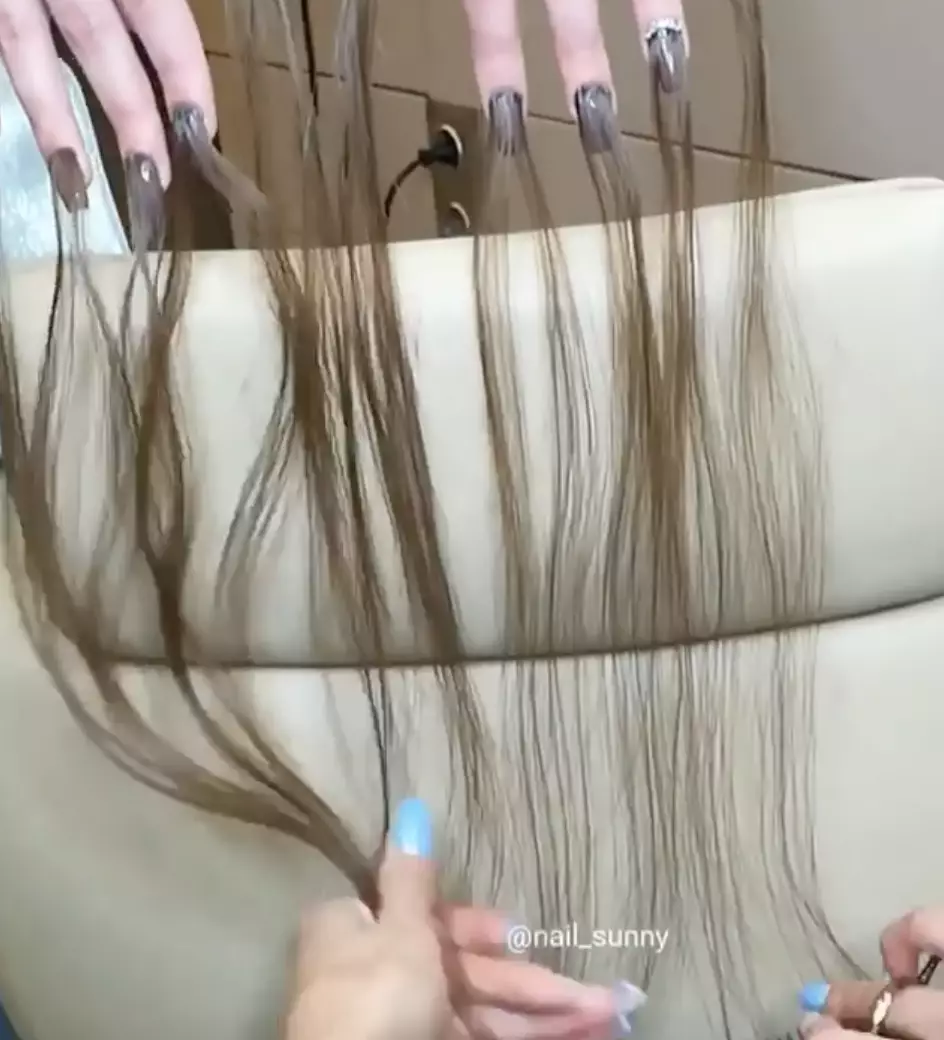 日前,有專門打造新奇美甲的美國加利福利亞美甲師nail_sunny在IG賬戶上分享自己發明的新款美甲造型「頭髮指甲」。她用影片展示這款奇特的美甲,當中用光療凝膠將長長髮片黏在十指上,讓雙手長髮飄飄。用家無聊的時候還可以為指甲上頭髮做造型,包括梳頭、捲髮、電髮等。看起來十分適合消磨時間呢!
