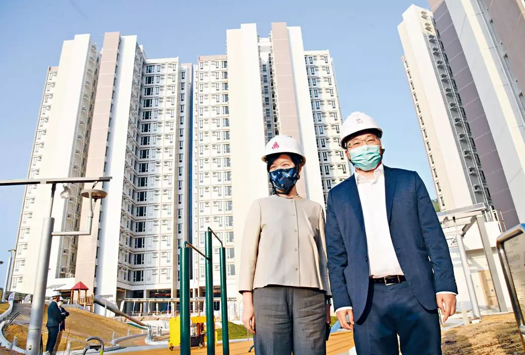 消防處百勝角已婚人員宿舍。(左)建築署署長何永賢,(右)發展局常任秘書長(工房)林世雄。