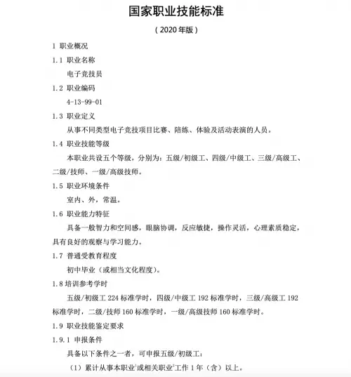 在這份標準中,電子競技員的職業有了明確定義:從事不同類型電子競技項目比賽、陪練、體驗及活動表演的人員。