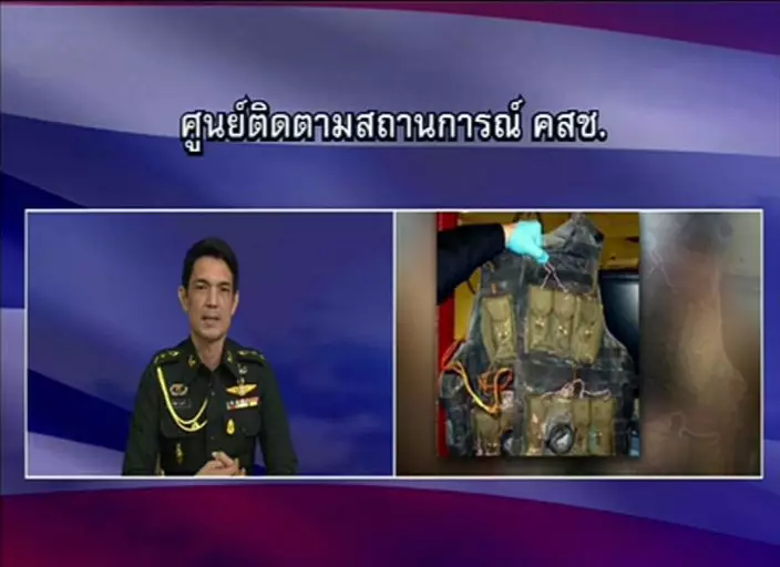 廣播在當日下午6時於所有免費電視頻道播出,泰國警察及軍政府國家維持和平秩序委員會各派一名發言人講話。當軍政府發言人溫泰發言時,畫面顯示照片,包括疑犯居住單位內部、疑犯大頭照、在地毯上攤開的物品等。