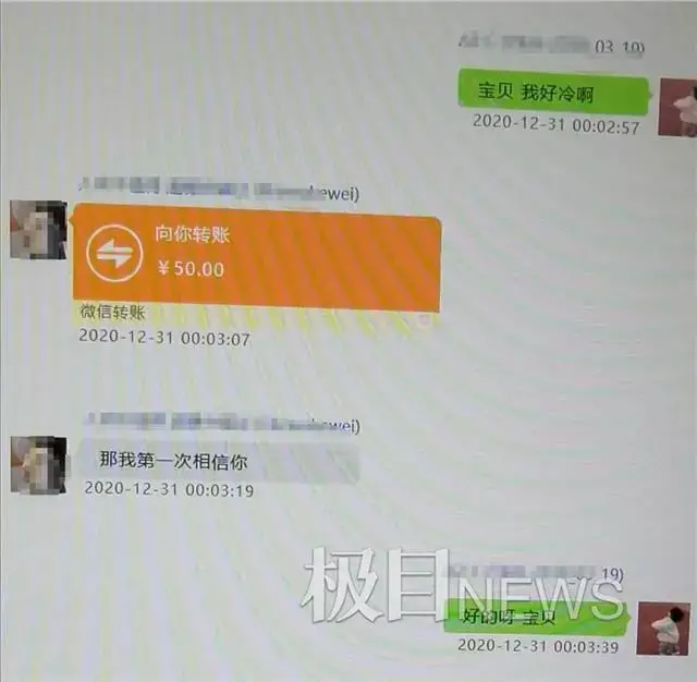 漸漸地,小吳也感覺到對方很懂自己,小怡也親昵地稱呼他為「寶貝」。“我想喝2020年最後一杯奶茶!”當小怡提出要求時,小吳很快就發了個50元的示好紅包。