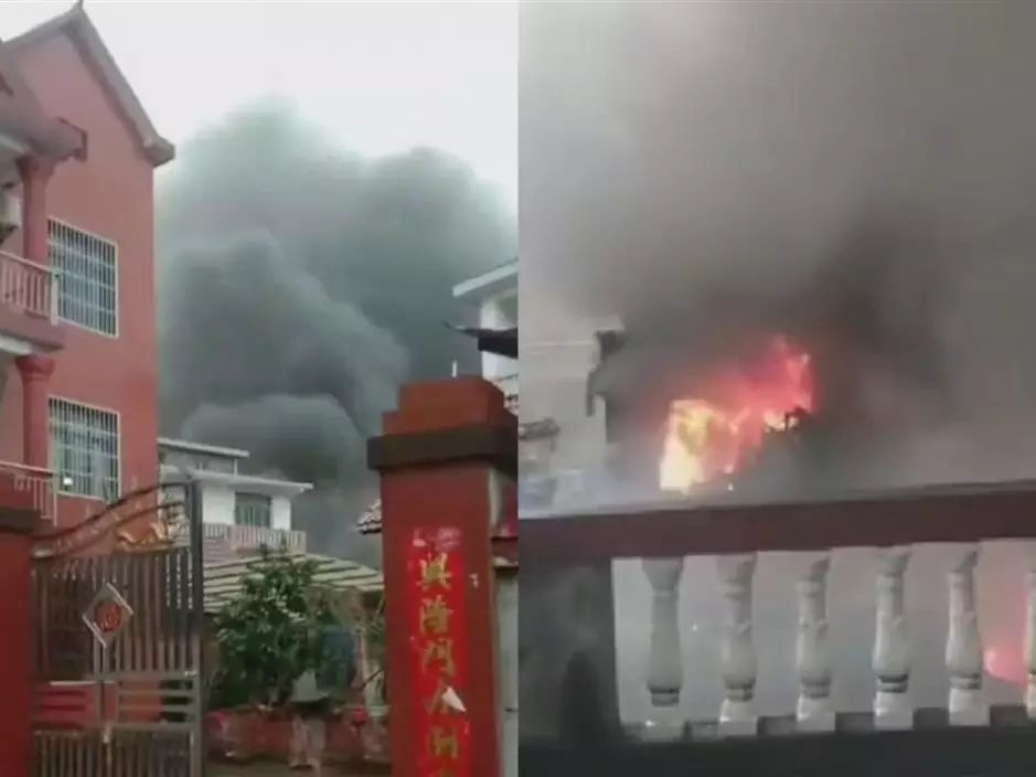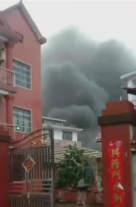 江西吉安一架直昇機於今午墜毀,擊中民居引致起火。網圖