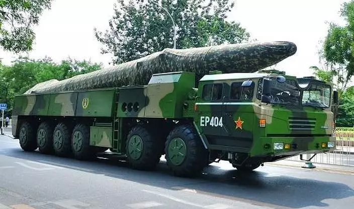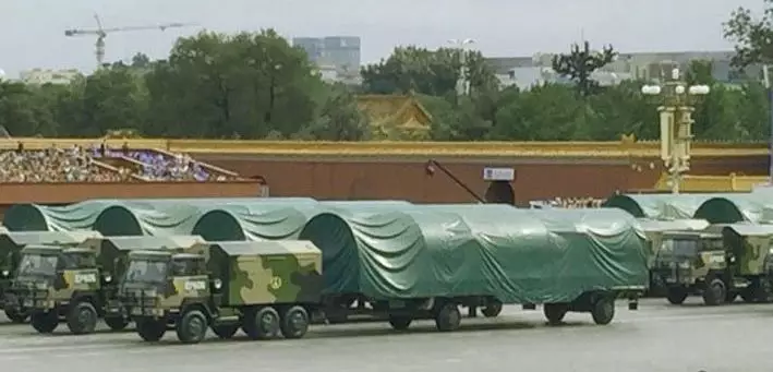 另外,《簡氏防務週刊》指,閱兵預演中東風-41多彈頭洲際彈道導彈並無現身,但猜測一支由卡車牽引、加載在拖車上的導彈可能是型號較老的東風-5B液體燃料洲際彈道導彈。這種導彈射程在1.2萬至1.5萬公里,能夠攜帶3枚以上分導式核彈頭。美國國防部在今年5月在軍事報告中首次承認這一類型導彈的存在。