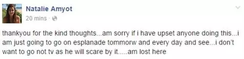 26歲的阿米奥特(Natalie Amyot)由昆士蘭穆魯洛巴回國後六星期發現自己懷孕:「三個月前我到穆魯洛巴度過精彩時光,結識到一班很棒的人。最後一晚我們開派對,認識一位很可愛的男子,對我來說是一鍾情,我們共享美好一夜。」