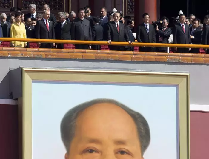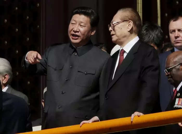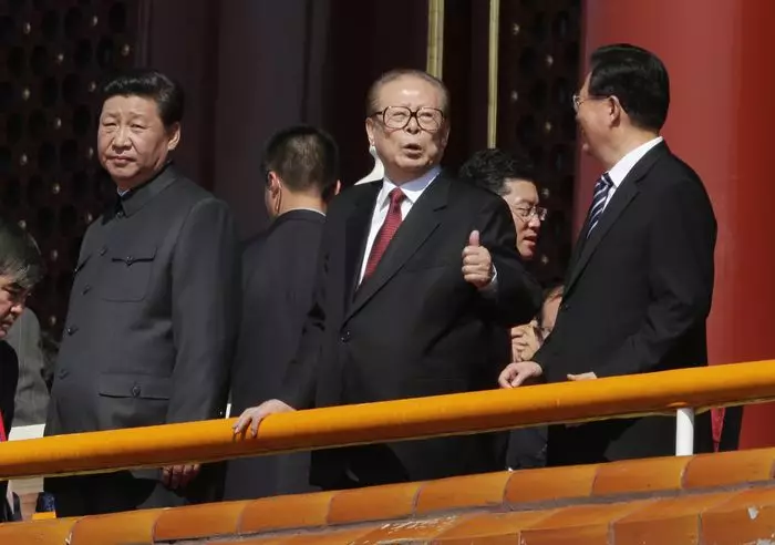 抗戰勝利七十周年閱兵開始,兩名前國家主席江澤民和胡錦濤亦有登上城樓觀看。