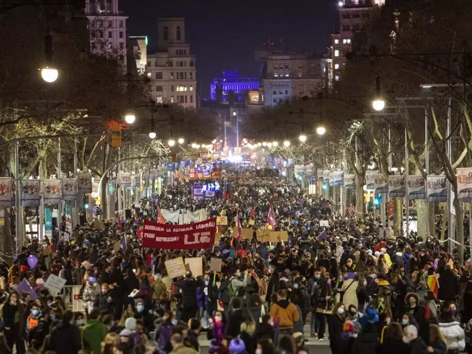 在西班牙各地,同樣有數以千計的婦女上街遊行示威,爭取平等待遇及合理權益,並抗議針對女性的暴力事件。不過,首都馬德里實施嚴厲防疫措施,當局禁止舉行公眾集會。在巴塞隆拿,參加示威的人數達到3500人。