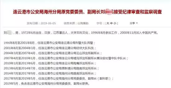 瀟湘晨報記者比對公開信息發現,此案中的連雲港市公安局海州分局路南派出所所長,後升任連雲港市公安局海州分局副局長的劉某乙已於 2019 年落馬。