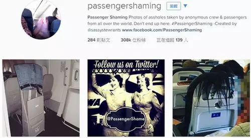 乘客搭長途機困在狹小機艙裡,遇著附近無品乘客確實難受。有忍無可忍的乘客和空中服務員拍下罪證上載到「丟臉乘客」(Passenger Shaming)的FB和IG公告天下。