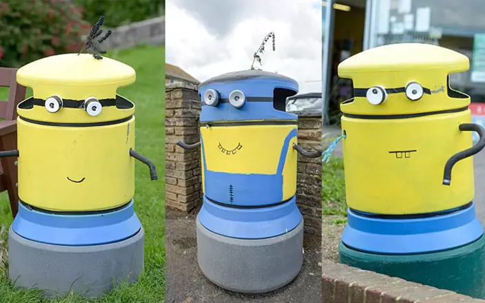 英國薩塞克斯郡皮斯哈文鎮十個垃圾桶,一夜之間遭人髹上黃藍色,改造成迷你兵團(Minions)公仔,每個都有護目鏡及粗藍布工人褲。鎮內居民大感不惑,更戲稱它們為「垃圾桶兵團」(Binions)。