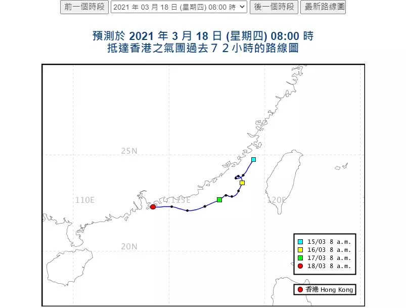 市民現時可以瀏覽天文台網站的「預測氣團抵港路線」,可以看到預測未來兩三日的上午 8 時或下午 8 時到達香港離地面 100 米高氣團的路徑,有助理解到達香港氣團的可能源頭。