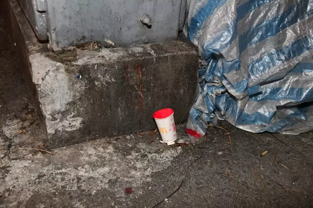 警員接報到場調查,在後巷發現一個裝有紅油紙杯,案件列作刑毀,並翻看閉路電視追緝疑犯。