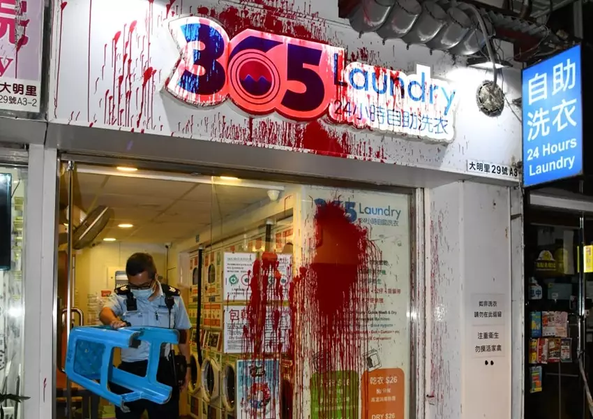 大埔廣福道及大明里兩間自助洗衣店凌晨約4時被人淋紅油,其中位於大明里的洗衣店,招牌及櫥窗玻璃染有大量紅油迹,而廣福道洗衣店有一部乾衣機被淋紅油,波及下方一部洗衣機。