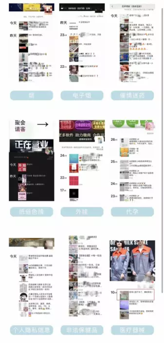 公告稱,公民在互聯網上售賣違禁品,根據情節嚴重程度,可能違反了《刑法》《治安管理處罰條例》等相關法律法規,同時根據《騰訊微信軟體許可及服務協議》《微信個人帳號使用規範》等相關規定,個人帳號不得發佈、展示、傳播的各類違禁品售賣信息,包括但不限於:煙、電子煙、催情迷藥、低俗色情、外掛、代孕、個人私隱信息、非法保健品、醫療器械等。