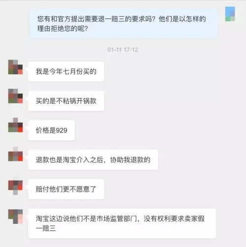 多位消費者接受採訪時表示,壹加拒絕履行「退一賠三」,僅可將鍋寄回,退還購買費用。也有消費者說,壹加客服以鐵鍋已使用為由拒絕退貨,電商平台介入方才退款。
