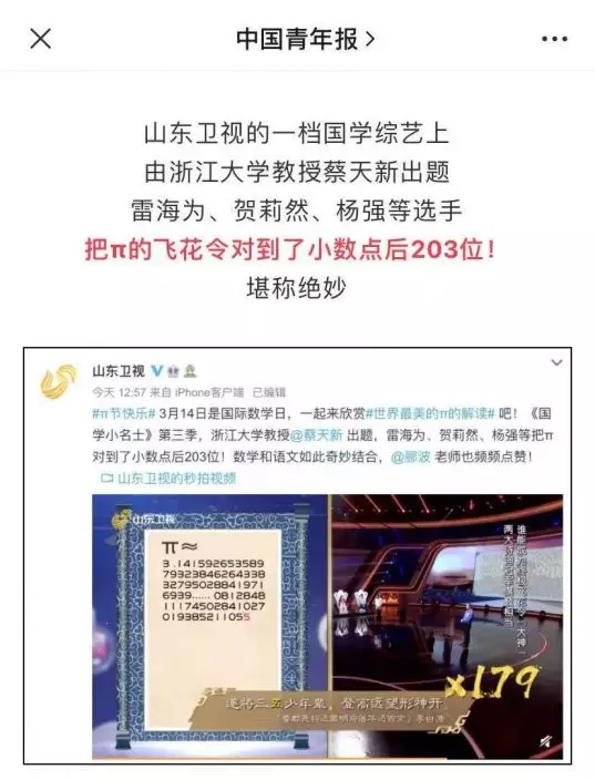 3月14日「國際數學日」,一段“π”的飛花令刷爆全網!而這位雷海為,就是一名外賣小哥。