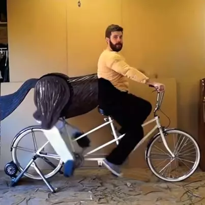 創意男「雙人單車」上裝「馬身」人騎上瞬變「人馬座」