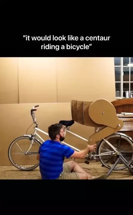 日前,美國男子Kyle Scheele在Tiktok平台上分享自己改造單車的影片,引起不少網友的熱烈回應。Scheele買的是一輛雙人座的單車,因為空間足夠所以他就萌生了將它改造成「人馬」造型單車的想法。改造前,Kyle他在網上搜索,發現自己竟是唯一有這種古怪想法的人,他笑稱「可能我的大腦特別奇怪,與眾不同吧。」