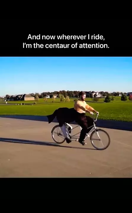 美國一名男子Kyle Scheele近日買了一輛雙人座單車,不過買回來以後他竟突發奇想對單車進行大改造,決意將單車變成「馬車」,將後半部分加上馬的後半身,這樣人坐上去之後就變成星座人馬座的標誌造型。這個離奇又搞怪的改造被分享到網上,令網民也嘖嘖稱奇。
