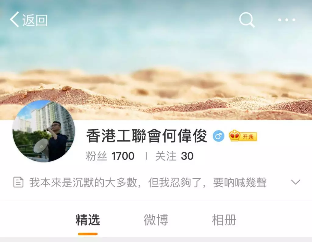 意外走紅後,昨日(16日),何偉俊也開通了微博(@香港工聯會何偉俊),親解事件:「當時我是坐著,沒有想過要跟任何人理論。黃伯來回過來我面前兩三次,手撐著腰,說我是錯誤的。什麼?愛國有什麼錯?別說我欺負你老,我是被動應戰的。」