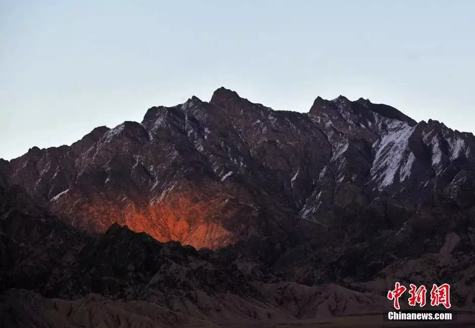 青藏線格爾木境內一束晚霞照在路邊山崖邊。中新社發 劉忠俊 攝