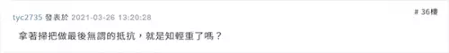 針對台灣藝人的上述正義行動,台行政機構負責人蘇貞昌出言譏諷道,有些人不知輕重,為了自己利益,不知道人權的重要。不少台灣網友在新聞下參與討論,駁斥蘇貞昌的荒謬言論。「拿著掃把做最後的抵抗就知道輕重了嗎?」「支持勇敢的藝人」「人家藝人有腦能辨是非,你有嗎?」