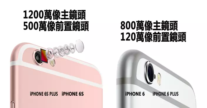iPhone 6s及 6s Plus的主鏡頭提升至1200萬像素,支援4K影片攝錄,當中6s Plus更有光學防震,較iPhone 6及6Plus的800萬像素提升不少。前置鏡頭像素亦由120萬提升至500萬,更有Retina補光燈功能,在較暗環境下可以利用熒幕補光。