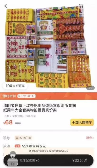外賣平台上售賣的冥幣等