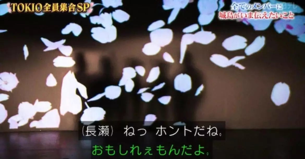 節目中,長瀨以特別的方式跟觀眾道別,4位成員獲安排以投射效果賞櫻,隊長城島茂將4人剪影放在燈光前,未料卻投射出5個人的身影,不忘因性醜聞而離隊的前隊友山口達也,松岡昌宏即驚訝表示:「怎麼會是5個人?」長瀨稱:「很好!至少還是5個人。」