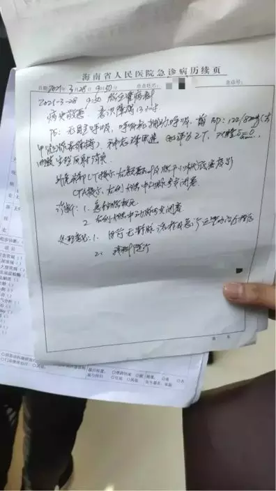 從3月28日,海南省人民醫院急診開具的診斷書顯示——「呼吸心跳驟停,大面積急性腦梗死,無自主呼吸」。期間,李女士多次被送入搶救。3月30日凌晨,李女士再次送入搶救後,因搶救無效不幸離世。