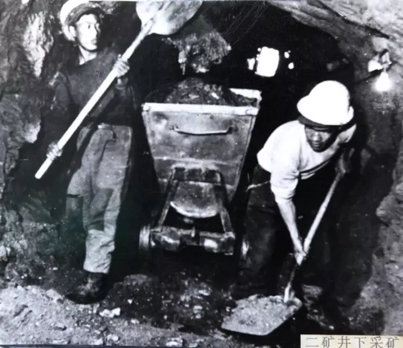 上世紀六七十年代,可可托海礦工在井下裝運礦石。資料圖片